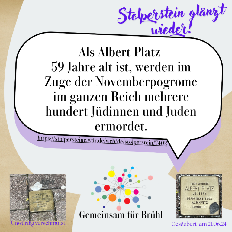 Ein Stolperstein für Albert Platz wurde absichtlich verschmutzt. Nach der Reinigung möchten wir an ihn erinnern:
